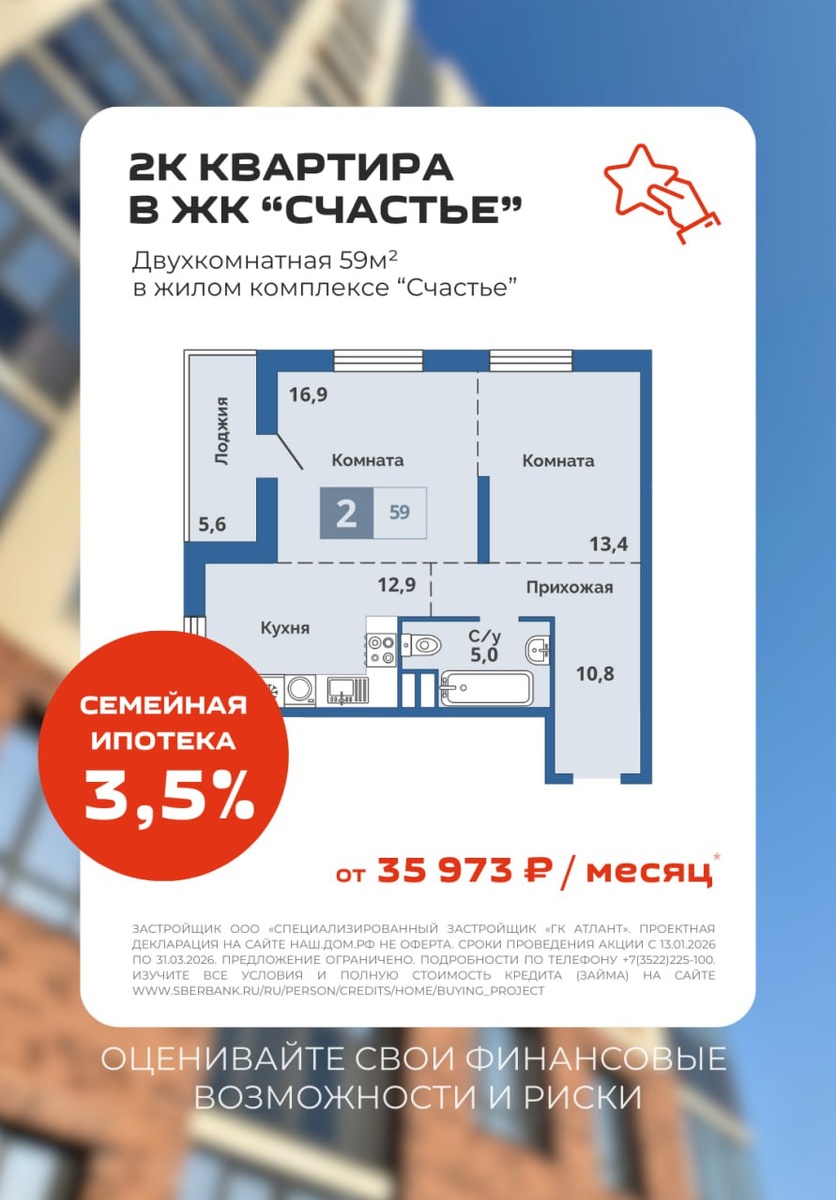✅ Идеальный вариант для семьи с ребенком: двухкомнатная со сниженной ставкой — 3,5