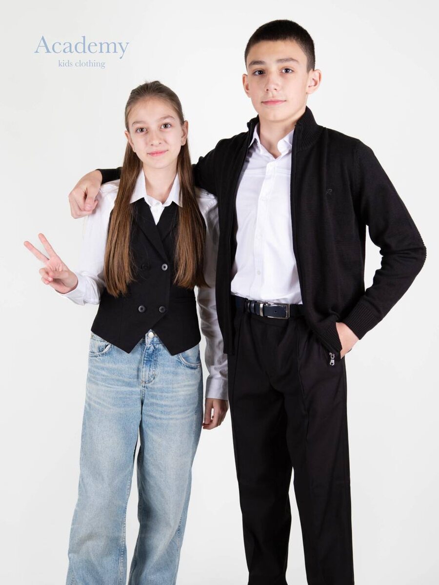 ☘️📘 ⠀ 👦🏻 – идеальный баланс между классикой и современным стилем! Белоснежная рубашка подчеркивает аккуратность и элегантность, а черные брюки и кардиган добавляют образу строгости и утонченности. ⠀ 👧🏼– стильный микс элегантности и свободы! 💫 Классическая белая рубашка и приталенный черный жилет создают аккуратный силуэт и добавляют нотку делового шика. Такой верх легко комбинировать с любым низом, а модные акценты делают look идеальным для учебы и активного дня! ⠀ Рубашка: https://clck.ru/3HK6Jx Кардиган: https://clck.ru/3HK63W Брюки: https://clck.ru/3HK6Bw ⠀ Рубашка: https://clck.ru/3HK7Mo Жилетка: Скоро на сайте ⠀ Вы всегда можете связаться с нами, если у вас возникнут вопросы 🫂 ⠀ Instagram: academykids.store Telegram: academykid Сайт: academystore.ru Тел: + 7 (938) 081-00-82 ⠀ Ждем вас по адресу: г. Нальчик, ул. Идарова 172, 2 этаж. Ежедневно 11:00 - 19:00 ⠀