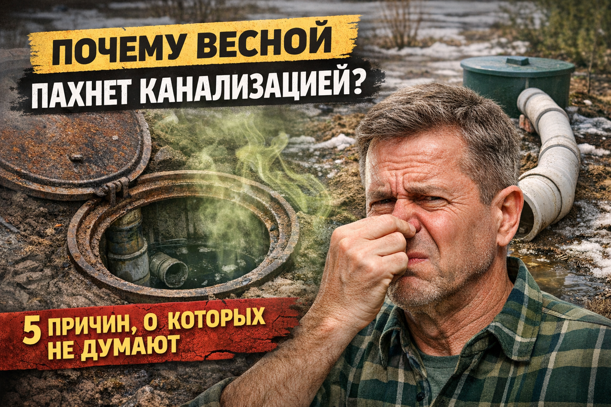 Весной многие сталкиваются с одной и той же странной ситуацией. Дом вроде пережил зиму нормально — ничего не течёт, не ломалось. Но открываешь дверь, заходишь в санузел или на кухню… и чувствуешь запах канализации. Причём он может быть: то сильный, то пропадает – появляться утром или после оттепели – усиливаться при ветре. И самое неприятное — непонятно, откуда он. На практике в 90% случаев это не «сломалось что-то серьёзное», а типичные весенние эффекты, о которых просто не думают. Разберём 5 самых частых причин. Самая банальная и при этом самая частая история. Гидрозатвор — это вода в сифоне (под раковиной, в душе, унитазе), которая не даёт запахам из канализации идти обратно в дом. Что происходит зимой: вы редко пользуетесь раковиной или душем – вода в сифоне постепенно испаряется – в неотапливаемых помещениях может вообще пересохнуть Весной вы приезжаете — и получаете «аромат». 📌 Как понять, что это оно: запах идёт из конкретной точки (раковина, трап) – после того как пролили воду