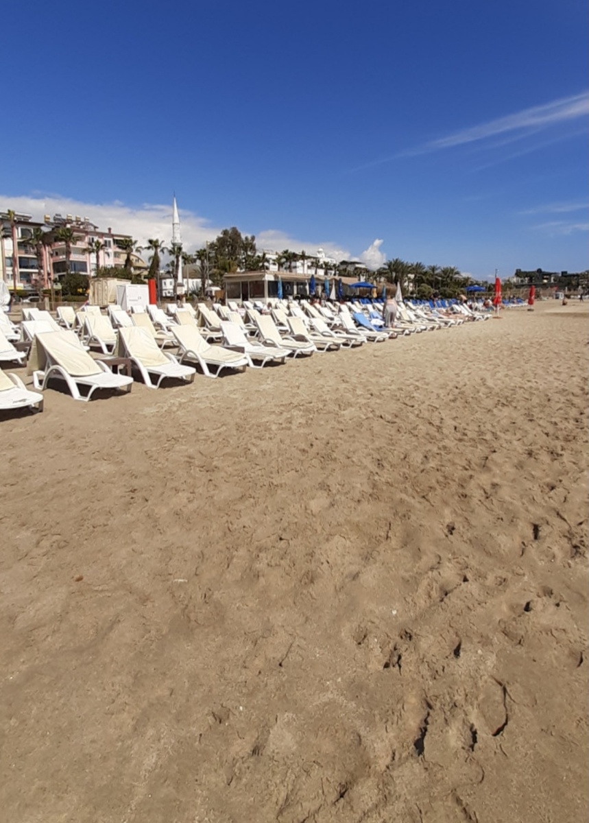 район Аланьи, махалле Сарай, улица Юнус Эмре, 34A. Отель находится на 3-й линии от моря, что обеспечивает тишину и спокойствие, но сохраняет доступность пляжа. До пляжа можно добраться на бесплатном шатле, а пешком примерно 20 минут спокойным шагом. Поскольку отдых Межсезонный, то наличие первой линии не столь актуально. Именно за счёт сочетания того, что отель городской, и на находится на первой линии, то это даёт ему заметный бонус ввиде не высокой цены.