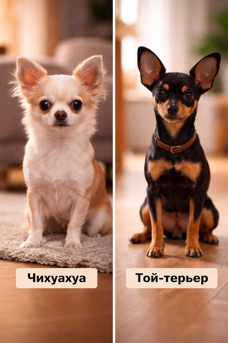 Маленькие собаки кажутся простыми. Многие думают: с ними легко. Не нужно много гулять. Не нужно серьёзного воспитания. Но именно с такими породами чаще всего и начинаются проблемы. И возникает вопрос: кто из них сложнее в реальной жизни - чихуахуа или той-терьер? Почему их часто недооценивают Про эти породы сложилось много стереотипов. Про чихуахуа говорят: нервные, капризные. Про той-терьера: шумный, гиперактивный. Часто их воспринимают как "декоративных" собак, с которыми не нужно особо заниматься. Но реальность обычно оказывается другой. Разберёмся по ключевым различиям Чтобы понять, с кем действительно проще жить, важно смотреть не на размер, а на поведение. И здесь различия становятся заметными. Характер: Чихуахуа Чаще сильно привязывается к одному человеку. Может быть ревнивым. Осторожно относится к чужим. Иногда проявляет настороженность даже в знакомой обстановке. Той-терьер Более открытый и контактный. Легче идёт на взаимодействие. Быстрее возбуждается и реагирует на происхо