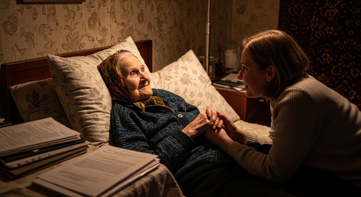 Баба Нюра — это мамина мать. Восемьдесят один год, двушка в старом фонде, сталинка с высокими потолками, в самом центре. Полгода назад у неё случился инсульт, она почти не вставала, Наташа ездила к ней через день: кормила, читала вслух, меняла бельё.