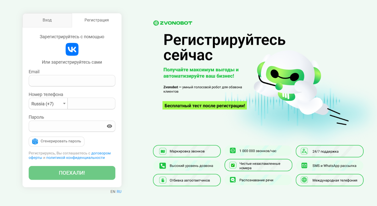 - Обзванивать большое количество клиентов за короткое время – тысячи звонков запускаются автоматически.