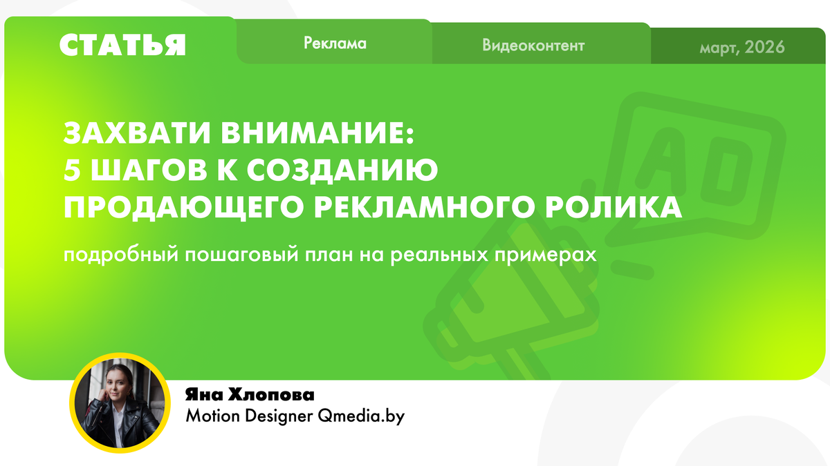В агентстве Qmedia мы уверены, что видео не должно быть создано просто ради самого видео. Важно, чтобы оно соответствовало общей стратегии бренда и эффективно вписывалось в digital-воронку. Мы разрабатываем контент, который не только привлекает внимание, но и ведёт зрителя через все этапы воронки, обеспечивая максимальную конверсию. Обратиться!