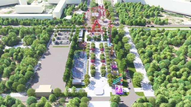 В Красноармейском районе Волгограда начались работы по планировке территории будущего парка развлечений. Проект предусматривает создание общественного пространства площадью около 1,6 гектара. Здесь появятся аттракционы, точки питания, зоны отдыха, площадь со сценой, а также озеленение и парковка. В настоящее время специалисты с помощью спецтехники демонтируют изношенное асфальтовое покрытие и выравнивают участок. Одновременно завершается первый этап монтажа колеса обозрения — установка восьми опорных колонн. В ближайшее время подрядная организация приступит к сборке центрального вала, к которому затем будут крепиться элементы конструкции аттракциона. Также началась подготовка к установке ещё одного объекта — экстремальных горок «Циклон», ранее располагавшихся в Центральном парке культуры и отдыха. Открытие нового парка в Красноармейском районе запланировано на текущий год. Помимо колеса обозрения, для жителей южной части города будут доступны семейные аттракционы, включая «Диско», «Пры