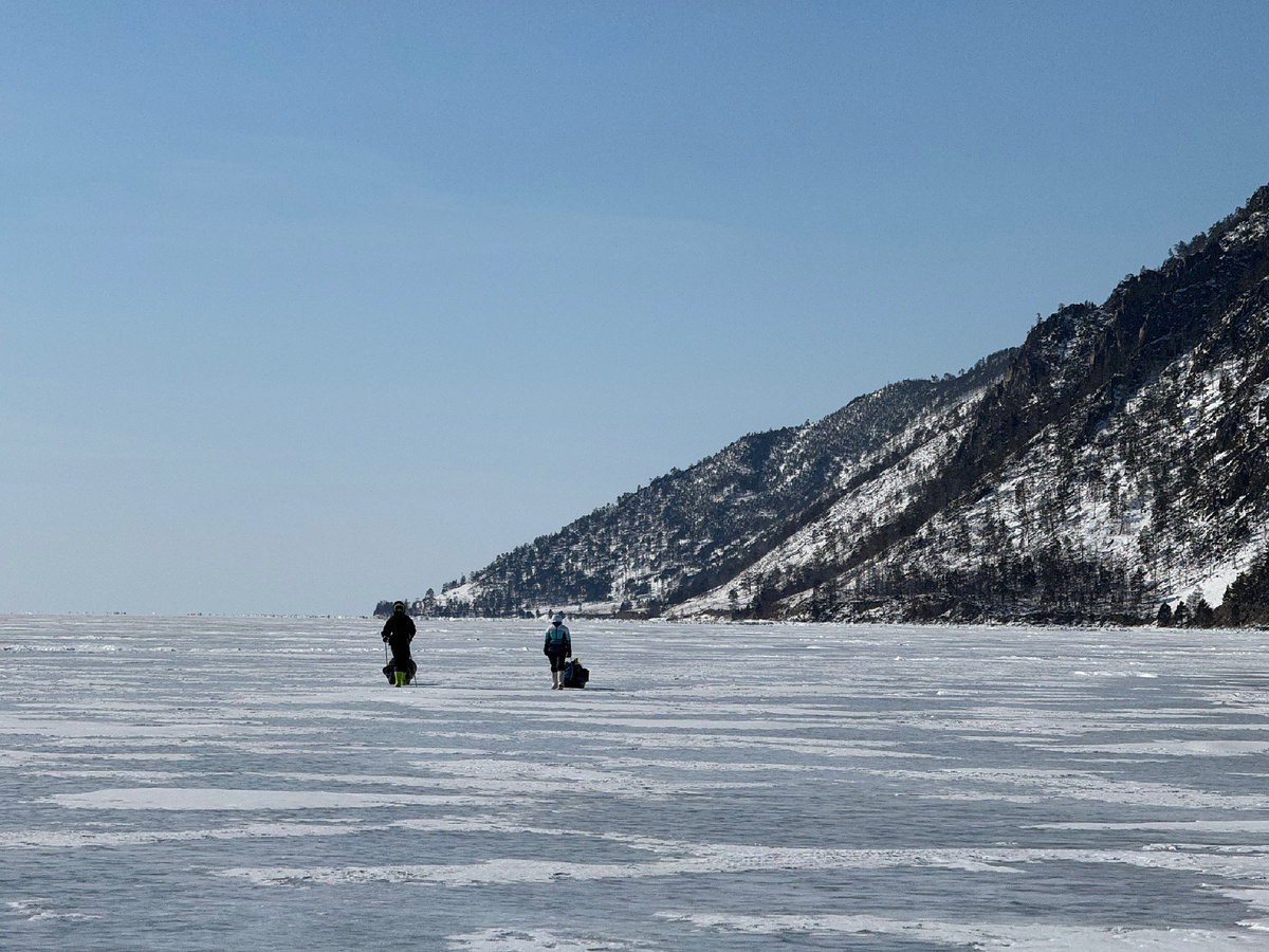 Утро началось с лагерных дел: помогли с завтраком, собрали палатку — и в 10:40, позавтракав, вышли в путь. Сегодня был самый длинный переход — больше 20 км. Я заранее запаслась энергетическими гелями (давно хотела протестировать их в походе — и вот идеальный момент). Уже после первой трети пути силы начали уходить, съела первый гель — и это было что-то! Энергия вернулась мгновенно: я шла, пела песни и чуть ли не сальто крутила 😀 Обед тоже отлично подзарядил. А дальше — невероятная красота: лед, от которого невозможно оторваться. Хотелось фотографировать каждую трещину, каждую деталь. В толще льда попадались вмерзшие маленькие рачки — разглядывать их было отдельным удовольствием. Закат окрасил всё в золотые оттенки, а мы всё шли и шли. Ветер усиливался, солнце спряталось за горы, включили фонарики. Последние 2–3 км дались тяжело — я замедлилась. Трое из группы дошли до лагеря раньше и подавали нам сигналы с берега — это очень поддерживало. В 19:30 мы наконец добрались. Поясница гуд