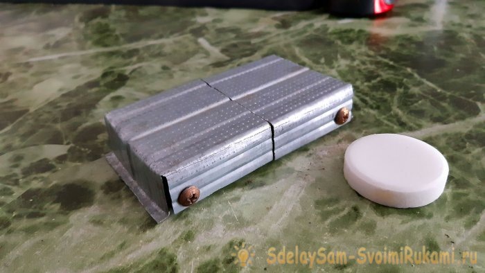 После завершения внутреннего ремонта или наружной облицовки дома всегда остаётся множество ненужных вещей. Среди них — фрагменты старых стройматериалов, которые ещё могут пригодиться, а также обрезки нового материала, которые кажутся бесполезными. Однако, немного поразмыслив и проведя полчаса в интернете, можно найти множество идей, как превратить эти остатки в полезные и нужные предметы. Карманную армейскую печь, работающую на сухом спирте (таблетки сухого горючего), которую я планирую сделать из остатков оцинкованного профиля, я давно хотел приобрести в одном из интернет-магазинов. Однажды, случайно зайдя в интернет, я увидел видео, где один человек создал аналогичный предмет всего за десять минут и с использованием минимального набора инструментов. Для начала нужно было выделить три фрагмента из цельного профиля. Один из них длиной 100 мм, а два других — по 75 мм каждый. Поскольку мои ножницы по металлу вышли из строя, я использовал бормашину с отрезным диском для резки оцинковки. П