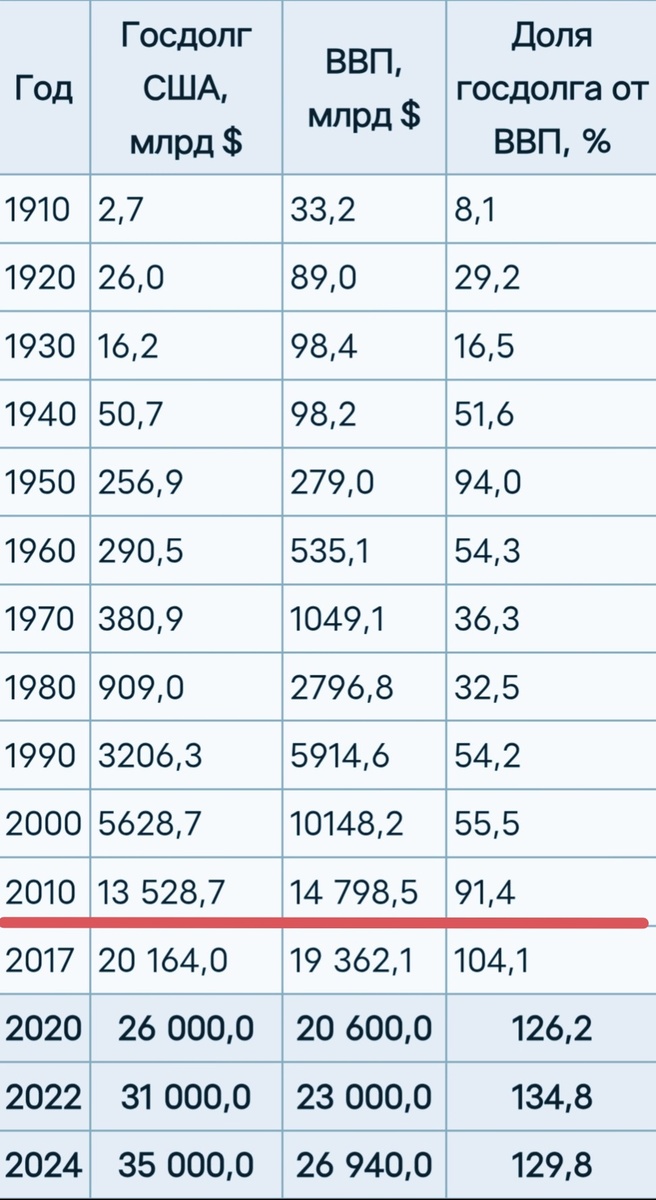 Район 2035 года будет моментом начала ожидания объявления Соединёнными штатами Америки дефолта по суверенным долгам.