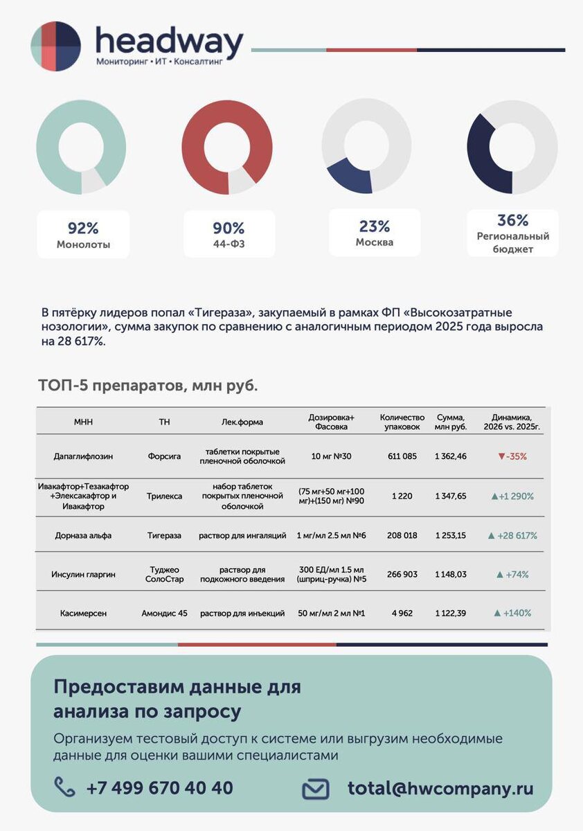 Представляем вашему вниманию анализ тендерного рынка ЛС по итогам февраля 2026 года от Headway