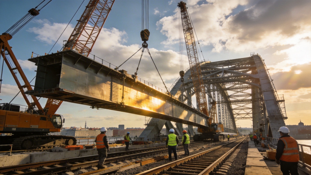 Цимбалинский путепровод в Петербурге готов наполовину: что уже сделано В Петербурге продолжается реконструкция Цимбалинского путепровода. Работы идут по графику. Уже завершен важный этап монтажа металлоконструкций Фотография: Peterburg2.ru В Санкт-Петербурге работы на Цимбалинском путепроводе вышли на новый этап: строительная готовность объекта достигла 55 процентов. На участке над Октябрьской железной дорогой специалисты завершили надвижку пролетного строения правого направления. Конструкции длиной почти 250 метров уже установлены на опоры, после чего их начали опускать на проектные отметки. Это позволило перейти к следующему этапу - монтажу металлоконструкций остальных пролетов. По данным пресс-службы Смольного, реконструкция Цимбалинского путепровода решает сразу несколько транспортных задач. После завершения работ проезжая часть станет вдвое шире, что заметно улучшит связь между Невским и Фрунзенским районами. Для пешеходов предусмотрены новые тротуары, а для велосипедистов - отдел