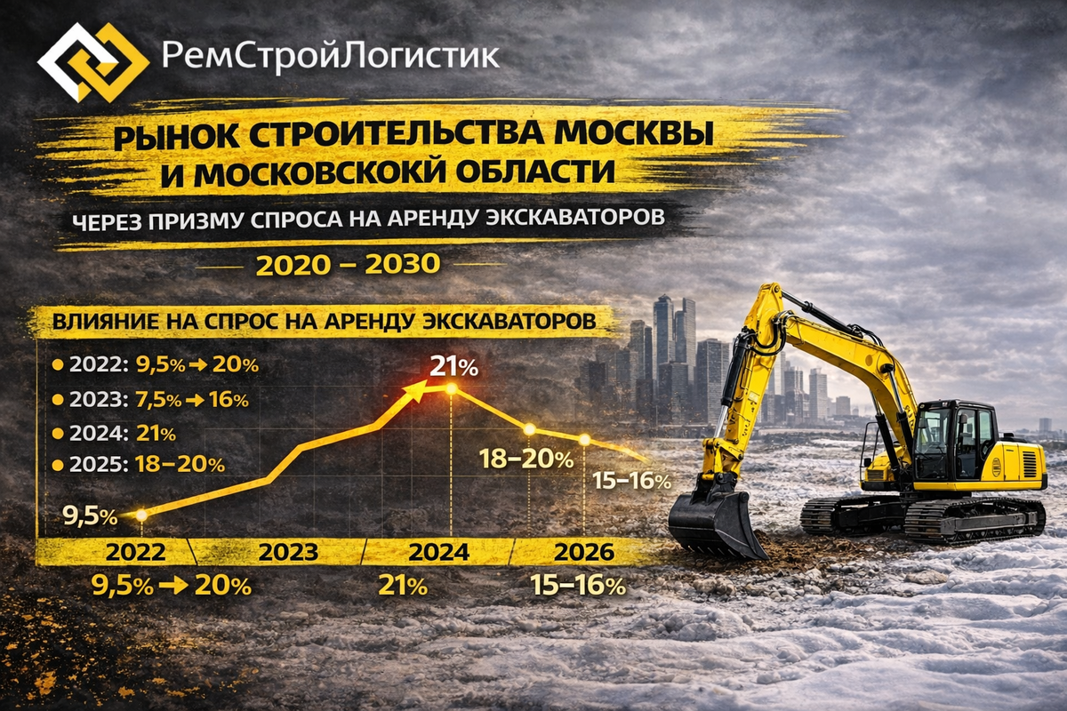 Рынок аренды строительной техники, в частности экскаваторов, является производной от общего состояния строительной отрасли. В Москве и Московской области - крупнейшем строительном кластере России - динамика спроса на спецтехнику напрямую коррелирует с объемами жилищного, коммерческого и инфраструктурного строительства.