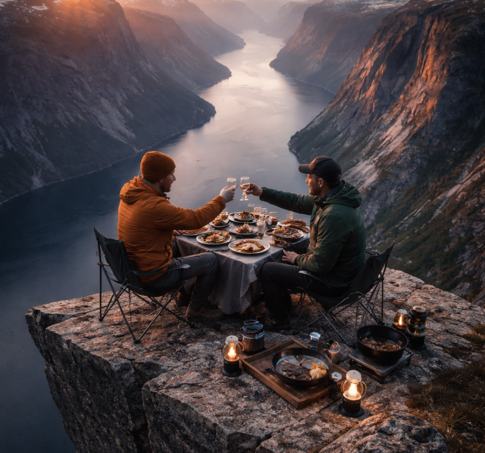 Ты больше не впечатляешься ужином в ресторане. Белая скатерть, свечи, тартар–всё это уже было. Слишком безопасно, слишком предсказуемо. Теперь люди хотят есть на краю скалы, в ледяной пещере или посреди шторма. И это не просто безумие, а новый гастротренд, который стремительно захватывает мир. Раньше ресторан–это был комфорт. Теперь–это испытание. Ты не просто сидишь за столом. Ты добираешься до него через снег, ветер или подъём в гору. Иногда у тебя мёрзнут руки. Иногда сносит ветер. Но именно в этот момент еда становится настоящей. Причина простая–доступность убила ценность. Любую еду можно заказать за 15 минут, попробовать кухню любой страны, не выходя из дома. Вкус стал обыденным. Чтобы снова почувствовать его по-настоящему, людям нужен контраст. Холодный воздух, сложный путь, усталость–всё это усиливает восприятие. И в итоге обычное блюдо превращается в событие. Сегодня шеф–это уже не просто повар. Это человек, который создаёт опыт. Ты идёшь в лес, разводишь костёр, ждёшь, пока пр
