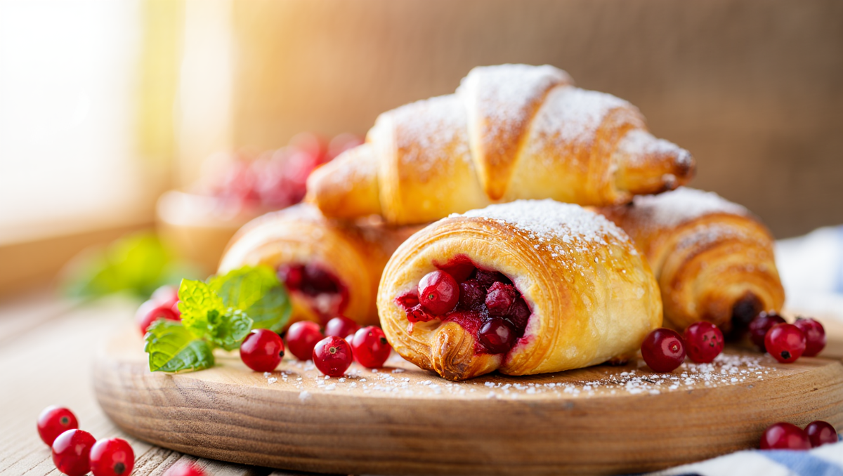 Секрет «пухового» теста: нежные рогалики с брусникой всего за 5 минут подготовки!