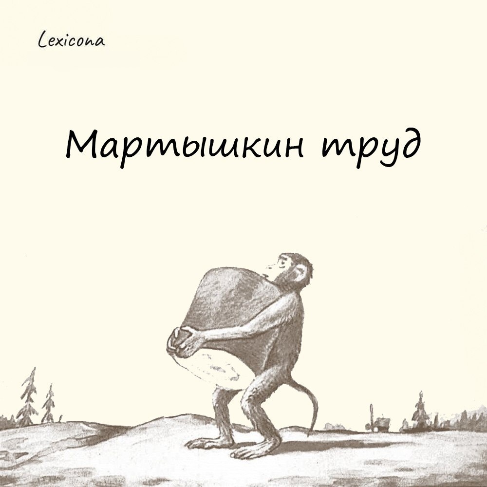 – это бессмысленная, бесполезная работа, не приносящая никому пользы; напрасные старания. Фразеологизм берёт корни из басни Крылова «Обезьяна». Басня посвящена мартышке, которая старательно выполняет бессмысленную работу — перекатывает с одного места на другое большой чурбан. Причём делает она это из зависти к крестьянину, который трудится на заре с сохой. Как хочешь ты трудись; Но приобресть не льстись Ни благодарности, ни славы, Коль нет в твоих трудах ни пользы, ни забавы.