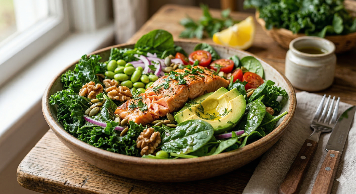 Свежий шпинат — 200 г (самый важный продукт для эластичности сосудов).