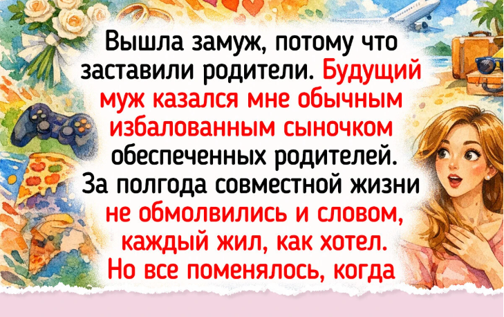 - Вышла замуж, потому что заставили родители. Мужа будущего возненавидела сразу, казался мне обычным избалованным сыночком обеспеченных родителей. За полгода совместной жизни не обмолвились и словом, каждый жил, как хотел, он встречался с другими, как и я. Потом я очень сильно заболела, даже с кровати встать не могла. Он начал ухаживать за мной, привозить лекарства. За все время болезни не пропустил ни одного моего похода к врачу, после работы сразу ехал ко мне, нанял сиделку, забил на свои тусовки и клубы. Как поправилась, пригласил на свидание, и я поняла, что замужем за лучшим мужчиной.