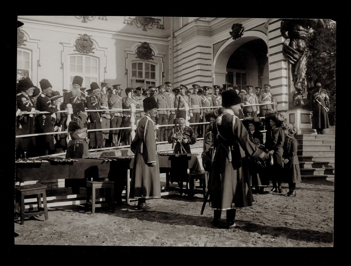 (ГАРФ ф. 601. оп.1 д. 2166) . Царское Село внутренний плац Екатерининского дворца. Государь Император и его дочери ... думается "показательные" выступления СЕИВ конвоя ... возможно юбилей-? #Романовы #РИА #ЦС ( в присутствии атамана всех казачьих войск - Цесаревича).