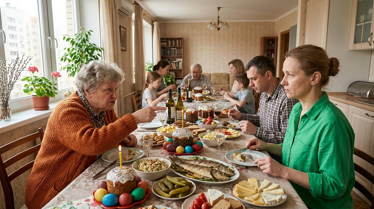 Алёнка спросила это в четверг вечером, за два дня до Пасхи. Она помогала раскладывать приборы — считала вилки, протирала каждую кухонным полотенцем.