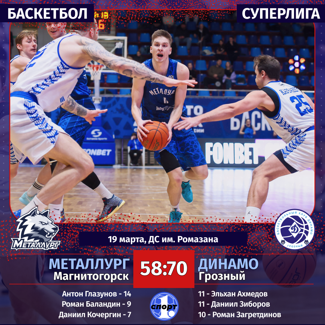Магнитогорский «Металлург» потерпел поражение в баскетбольной Суперлиге, уступив на своей площадке грозненскому «Динамо» со счетом 58:70. Южноуральцы осложнили себе задачу финишировать в топ-10 и попасть в плей-ин. Однако все продолжает зависеть только от них, все решат два заключительных домашних поединка, сообщает корреспондент ИА «Первое областное». Игра для обеих команд имела огромное турнирное значение. «Металлург» продолжает вести отчаянную борьбу за то, чтобы пробиться в плей-инн. Кстати, автор строк просит прощения у любителей баскетбола и читателей за то, что ранее опубликовал новость о том, что магнитогорский клуб остался за чертой плей-офф. Пробиться туда «Металлург» еще может, если займет в регулярном чемпионате с 7-го по 10-е места — четыре коллектива через утешительный турнир смогут пробиться в основную сетку плей-офф и побороться за медали Суперлиги. Что касается грозненского «Динамо», то он набрал прекрасный ход на финише «регулярки», одержал 7 побед подряд. Это позволи