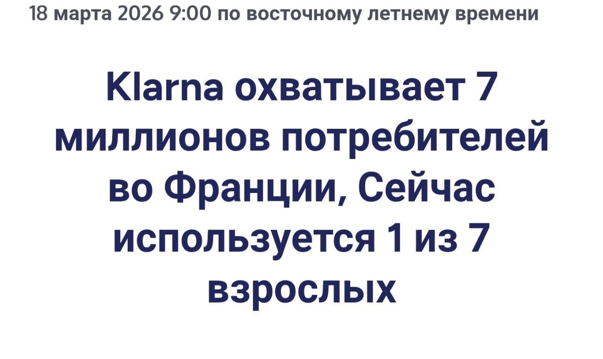 π₯Klarna #KLAR, Π³Π»ΠΎΠ±Π°Π»ΡΠ½ΡΠΉ ΡΠΈΡΡΠΎΠ²ΠΎΠΉ Π±Π°Π½ΠΊ ΠΈ ΠΏΠΎΡΡΠ°Π²ΡΠΈΠΊ Π³ΠΈΠ±ΠΊΠΈΡ ΠΏΠ»Π°ΡΠ΅ΠΆΠ΅ΠΉ ΡΠ΅Π³ΠΎΠ΄Π½Ρ ΠΎΠ±ΡΡΠ²ΠΈΠ»ΠΈ ΠΎ Π΄ΠΎΡΡΠΈΠΆΠ΅Π½ΠΈΠΈ 7-ΠΌΠΈ ΠΌΠΈΠ»Π»ΠΈΠΎΠ½ΠΎΠ² ΠΏΠΎΡΡΠ΅Π±ΠΈΡΠ΅Π»Π΅ΠΉ Π²ΠΎ Π€ΡΠ°Π½ΡΠΈΠΈ
