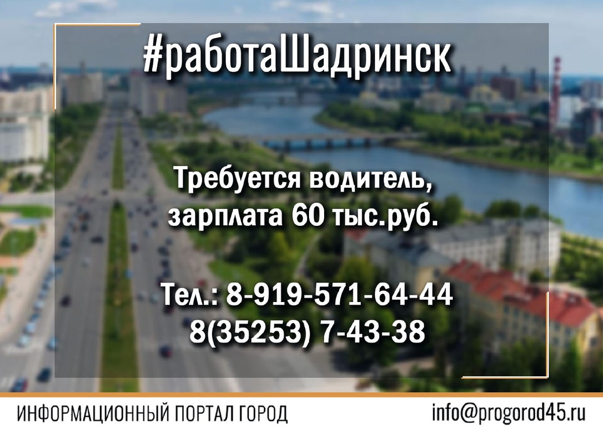Требуется водитель, зарплата 60 тыс.руб. Тел.8-919-571-64-44, 8(35253)7-43-38