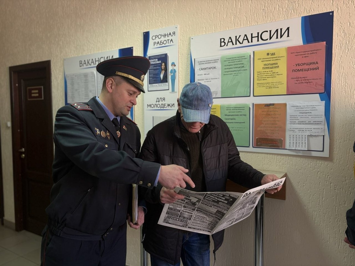 Бреста, управления по труду, занятости и социальной защите состоялась «Ярмарка вакансий» #Милиция_Брестчины #мы_всегда_рядом 👮♀️В ярмарке приняли участие лица, состоящие на учете в отделе охраны правопорядка и профилактики, а также лица, состоящие на учете в уголовно-исполнительной инспекции. Для указанных категорий лиц были предложены вакансии по различным направлениям деятельности, а ряду лиц выданы направления на работу для дальнейшего трудоустройства. ✍🏻Следует отметить, что в ОВД администрации Ленинского района г. Бреста состоит 12 трудоспособных не работающих лиц, состоящих на учете в ООПП, а в уголовно-исполнительной инспекции ОВД состоит 33 не работающих лица. 👮🏻♀️Как отметил первый заместитель начальника ОВД администрации Ленинского района г. Бреста – начальник милиции общественной безопасности Евгений Евтеев: «Указанное мероприятие направлено на помощь в трудоустройстве трудоспособных граждан, не занятых в экономике Республики Беларусь. Следует отметить, что для г