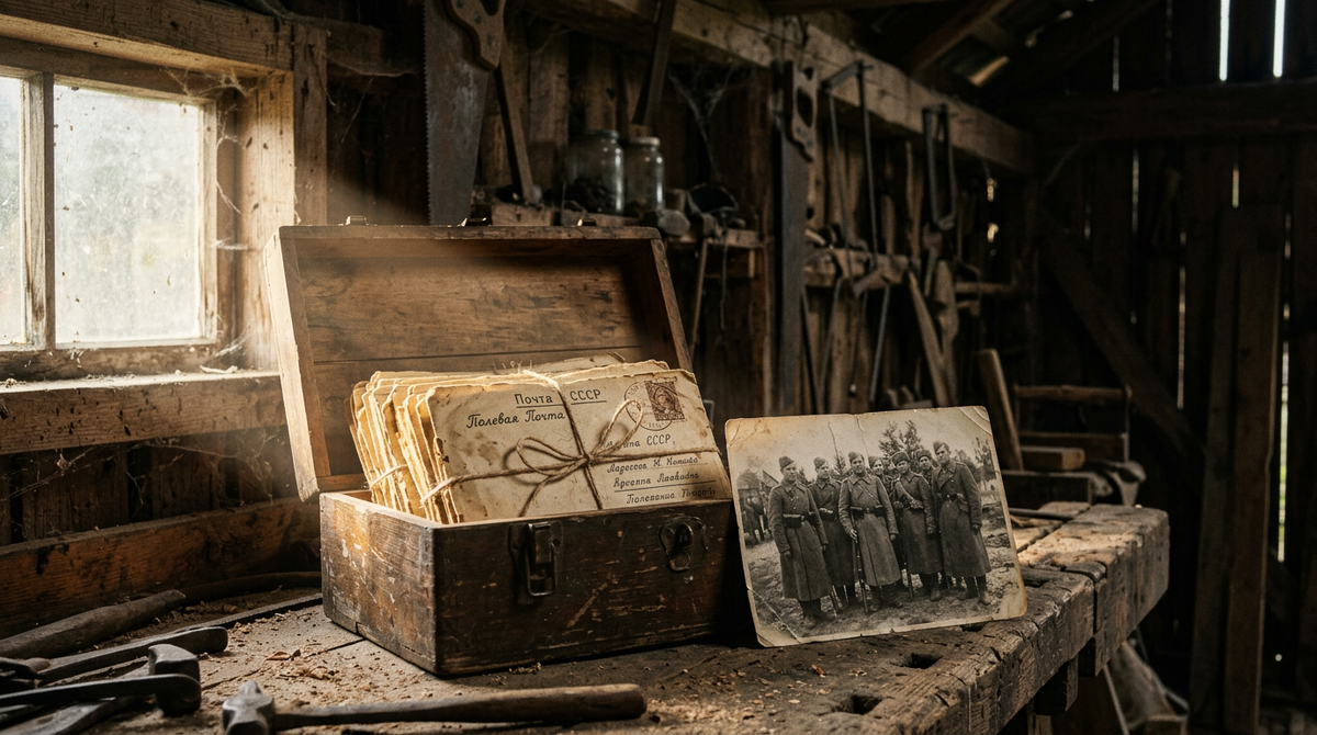 Я сел на табуретку деда. Ящик на коленях. Пыль, свет из окна, запах масла и дерева. И пять стопок конвертов — сорок девять лет жизни, записанной для мёртвых.