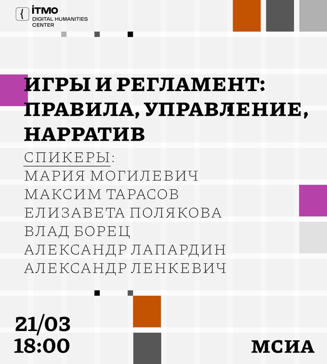 управление, через правила и через историю. А если проще — разработчики и исследователи игр встретятся и поговорят о том, чем разные подходы отличаются для гейм-дизайна и игрока, как это влияет на опыт участников и всякое такое. Один из спикеров — потрясающий Ransvind, арт-директор издательства «Рыжий Библиотекарь» и автор приключений в духе старой школы. Если вам интересно, обязательно приходите. Вход бесплатный, но с предварительной регистрацией. Когда: 21 марта, 18:00 Где: Музей советских игровых автоматов, Санкт-Петербург, Конюшенная пл., 2, лит. В Бесплатная регистрация: https://dh-center-itmo.timepad.ru/event/3867146/