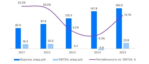 ? У главной социальной сети вышел отчет по итогам года, но сначала один факт. Население РФ — 143 млн человек — нужно будет для понимания цифр. Аудитория Сама социальная сеть продолжает постепенно расти, уже 93,4 млн (+2,5% г/г) человек заходит в сеть ежемесячно, Одноклассники и Дзен посещают 34 и 67 млн человек соответственно. Цифры впечатляющие, но MAX впереди планеты всей — уже 100 млн пользователей! Для справки, у телеграмма 90-95, а у WhatsApp около 95-100 млн пользователей. Это все, конечно, хорошо, но если сравнивать с цифрами населения России, то расти в плане аудитории особо некуда. Поэтому ключевое здесь — монетизация аудитории. Как это отразилось на финансовых показателях? Выручка выросла на 8% до 160 млрд руб. — довольно слабо, для IT-компании. Из позитивного — EBITDA составила 22,6 млрд руб. после убытка в 2024 году. В планах на 2026 год повторить результат по EBITDA — выше 20 млрд руб. Но в таком случае по EV/EBITDA бизнес стоит, мягко говоря, недешево — 11,4x при