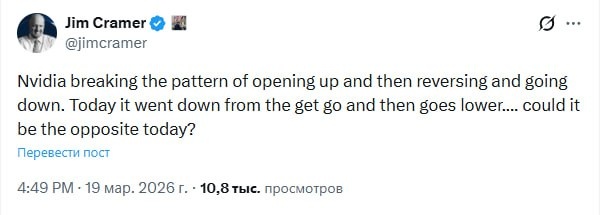 Nvidia ломает привычный паттерн, когда цена сначала открывается ростом, а затем разворачивается и идёт вниз