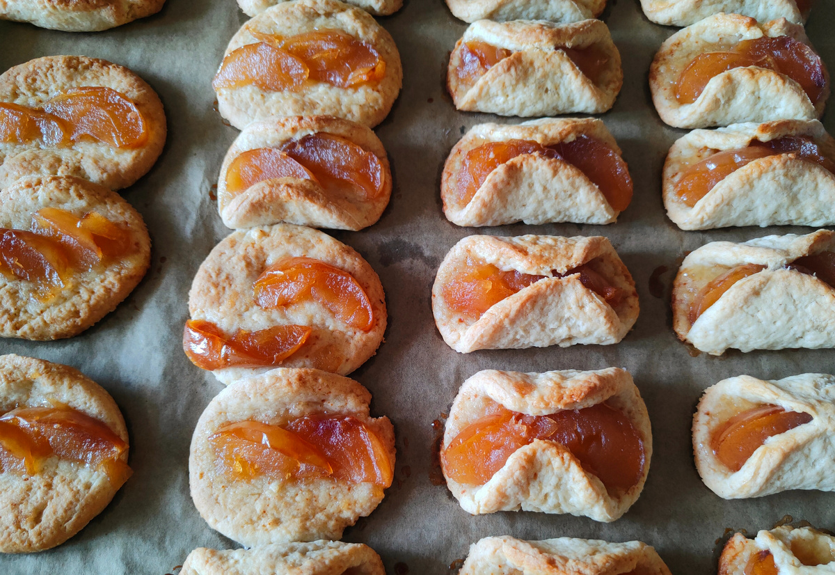 Как вы могли заметить, мы почти не покупаем магазинные сладости к чаю. Обычно я пеку какое-нибудь печенье, и нам противня хватает на неделю. Но какое бы оно не было вкусное, за это время уже немного надоедает, и хочется чего-то другого. Для меня это прекрасный повод чтобы попробовать новый рецепт. И не скажу что результаты таких кулинарных экспериментов всегда бывают удачными. Как и у всех, у меня временами случаются фейлы 😆 Так вышло и в этот раз, когда мне захотелось сделать другую форму печенья "яблочные дольки". Для начинки брала не свежие яблоки, как в рецепте, а засахаренные, из домашнего варенья. Но, увы, задуманные мной милые "купельки" раскрылись в процессе выпечки 🤷