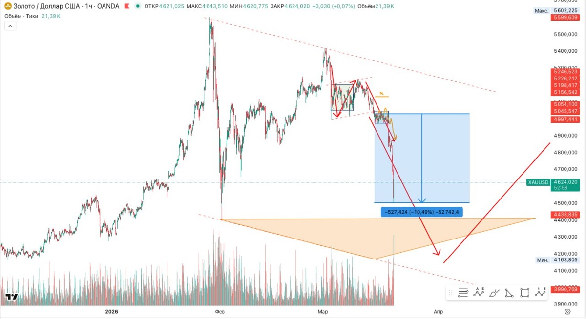 Золото - более 500 долларов снижения - на скрине план/факт