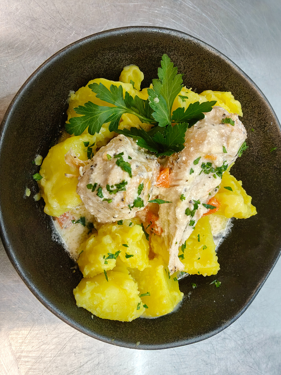 Это идеальное блюдо для спортсменов. Куриное филе – источник качественного постного белка, необходимого для восстановления мышц. Сливочный соус добавляет полезные жиры. Картофель – сложные углеводы для восполнения энергии. Рекомендую есть через 1–2 часа после тренировки как полноценный обед или ужин.