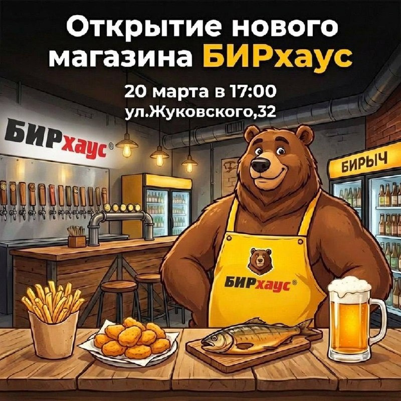 Открытие нового БИРхаус! Празднуем вместе! 20 марта в 17:00 приглашаем вас на грандиозное открытие магазина БИРхаус с кухней по адресу: ул