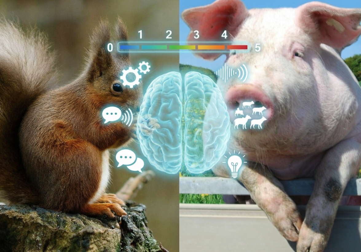 Белка — 3 балла. Коэффициент энцефализации (EQ) у белок точно не зашкаливает (точных цифр в общем доступе мало, так как они уступают приматам), но структура их мозга оптимизирована под пространственную память. Гиппокамп — отдел мозга, отвечающий за навигацию и память, — у белок развит феноменально. Это не просто «грызун», это живая GPS-система. Свинья — 4 балла. А вот тут неожиданный поворот. EQ свиньи составляет около 0.86. Это выше, чем у лошади (0.86) или овцы (0.81), и сравнимо с показателями собак и кошек. Но главное не только объём, но и структура: кора больших полушарий свиньи имеет извилины, схожие с человеческими, что говорит о высоких когнитивны