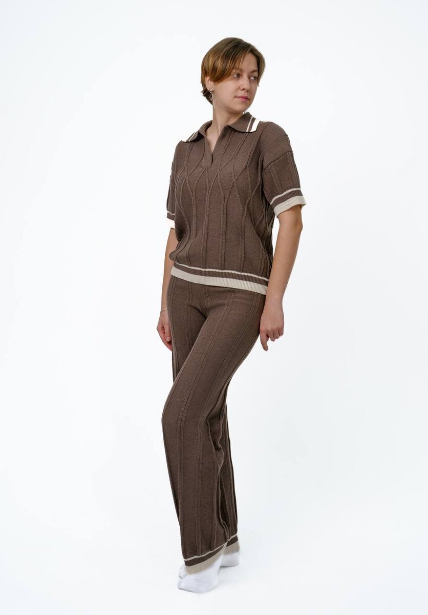 🔸Топ + юбка, 🔸Брюки + поло, 🔸Жилетка + юбка Такие сочетания легко собираются в капсулы и хорошо продаются как готовый образ. Почему бренды выбирают комплекты: — не нужно собирать образ — он уже готов — формируется более дорогой продукт — вещи можно носить вместе и по отдельности — удобно масштабировать в коллекции В производстве важно, чтобы изделия в комплекте совпадали по: — плотности — цвету — посадке — поведению после стирки Это даёт цельный и аккуратный результат. Стоимость изготовления комплекта — от 1100 ₽ (в зависимости от модели, состава пряжи и тиража)