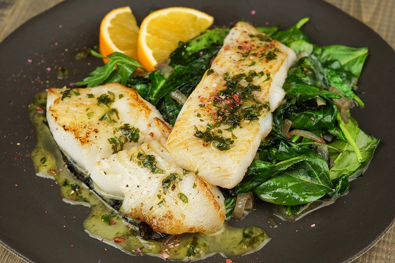 🐟🍊🌿Палтус со шпинатом в апельсиновом соусе — нежность моря и свежесть цитрусов