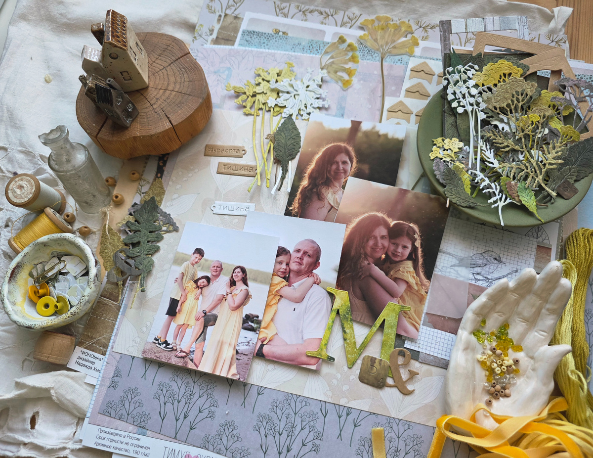Всем солнечный ботанический привет, с вами Наташа Конохова. Сегодня стартует наш новый совместный проект " Жили быди", где мы вместе с вами будем творить свои мини мими семейные истории. И я тоже хочу поделиться вдохновением и своими мыслями. Все, что случилось с нами, окружает нас - уже история, ведь этот миг вновь никогда не повторится. И очень важно сохранить не только фото в моменте, важно вспомнить свои ощущения, впечатления, уникальные смыслы, чтобы уложить все в общую канву под названием "воспоминания". Для меня каждый личный альбом - это повод вновь прочувствовать момент, и этот миник не будет исключением. В нем жили были мы в теплый летний вечер, обнимали друг друга, смеялись, шутили, были вместе в тихом местечке у реки. Альбомчик будет пропитан солнцем, как и все в тот вечер, и конечно без ботаники не обойдется, чего уж там))) В этот СП важную роль займет журналинг, и я решила не просто писать впечатления, хочу добавить строчки из любимых песен, точно передающих настроение то