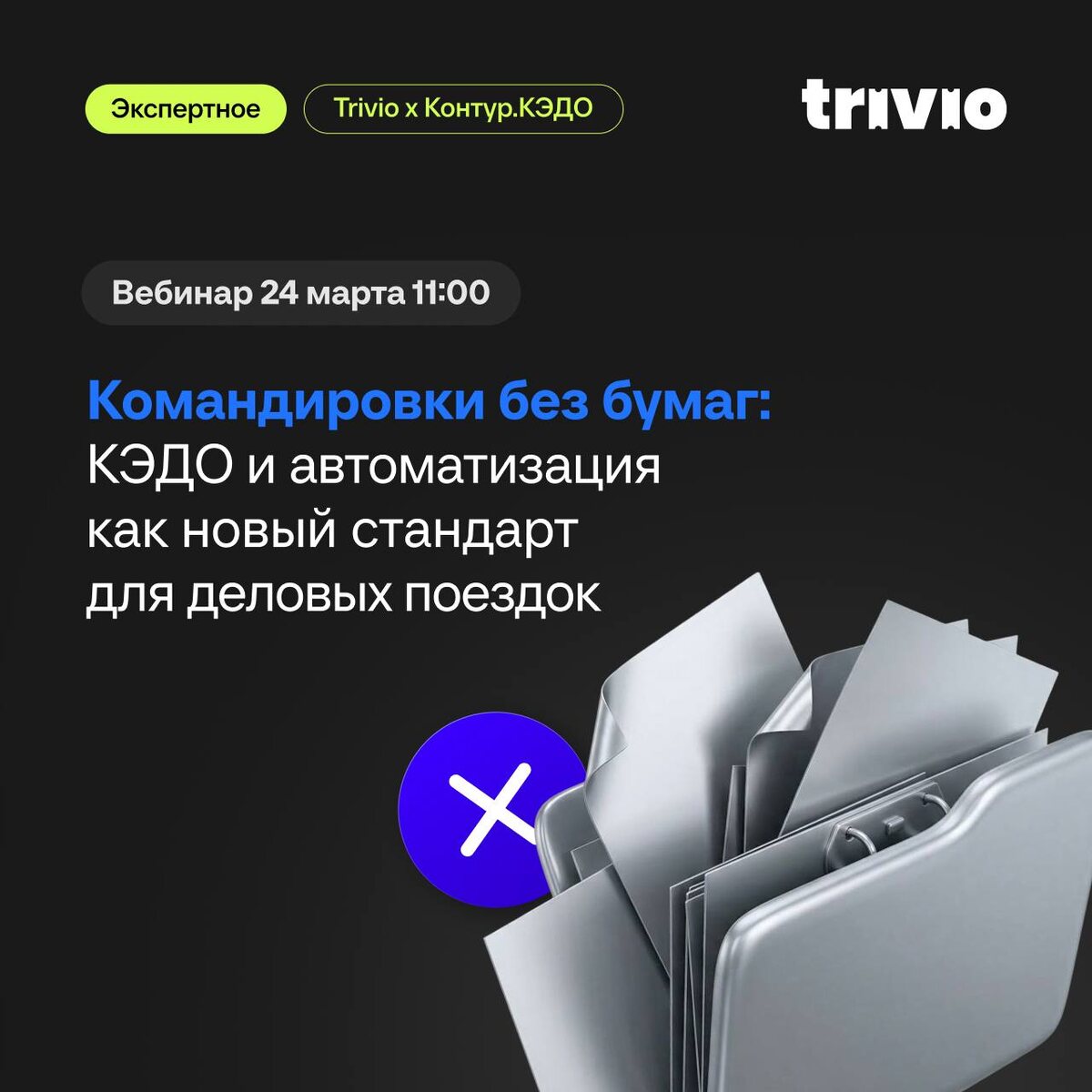 На бесплатном вебинаре 24 марта в 11:00 вместе с нашими партнерами из Контур.КЭДО докажем: переводить документы в онлайн — безопасно и выгодно. Что еще обсудим: 📍почему автоматизировать HR-процессы проще, чем кажется — законодательные нормы, готовые решения и сроки внедрения; 📍как электронный документооборот сохраняет время сотрудников и бюджет компании; 📍какие результаты получают клиенты Контур.КЭДО и Trivio после подключения обоих сервисов — в цифрах и отзывах. Присоединяйтесь к эфиру и готовьте вопросы для спикеров! Бонус за регистрацию — 2 бесплатных материала от экспертов: ✨ «Как выбрать оператора КЭДО»; ✨ «Топ‑7 ошибок при оформлении командировок». #вебинар #командировка