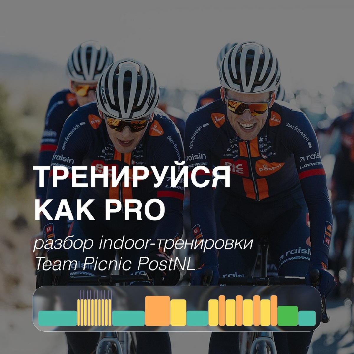 Продолжаем рубрику «Тренируйся как PRO», где мы разбираем реальные тренировки профессиональных команд и объясняем, что в них происходит и как любителям использовать это во благо, а не во вред. В прошлый раз мы разбирали тренировку EF Pro Cycling – силовую работу на низком каденсе. Сегодня на разборе 2-часовая indoor-тренировка команды Team Picnic PostNL. Структура тренировки и комментарий тренера — Анатолия Солодова: Тренировка состоит из трёх рабочих блоков, разделённых периодами отдыха в зоне низкой интенсивности. Первый блок Этот блок позволяет включить в работу как медленные, так и быстрые мышечные волокна. Похожий тренировочный эффект можно получить и во время длительной низкоинтенсивной езды. Однако здесь это реализовано в более компактном формате, что особенно удобно для тренировок на станке. Такой подход позволяет быстрее активировать разные типы мышечных волокон и подготовить организм к последующей работе. Второй блок Этот блок направлен на устойчивость аэробной систе