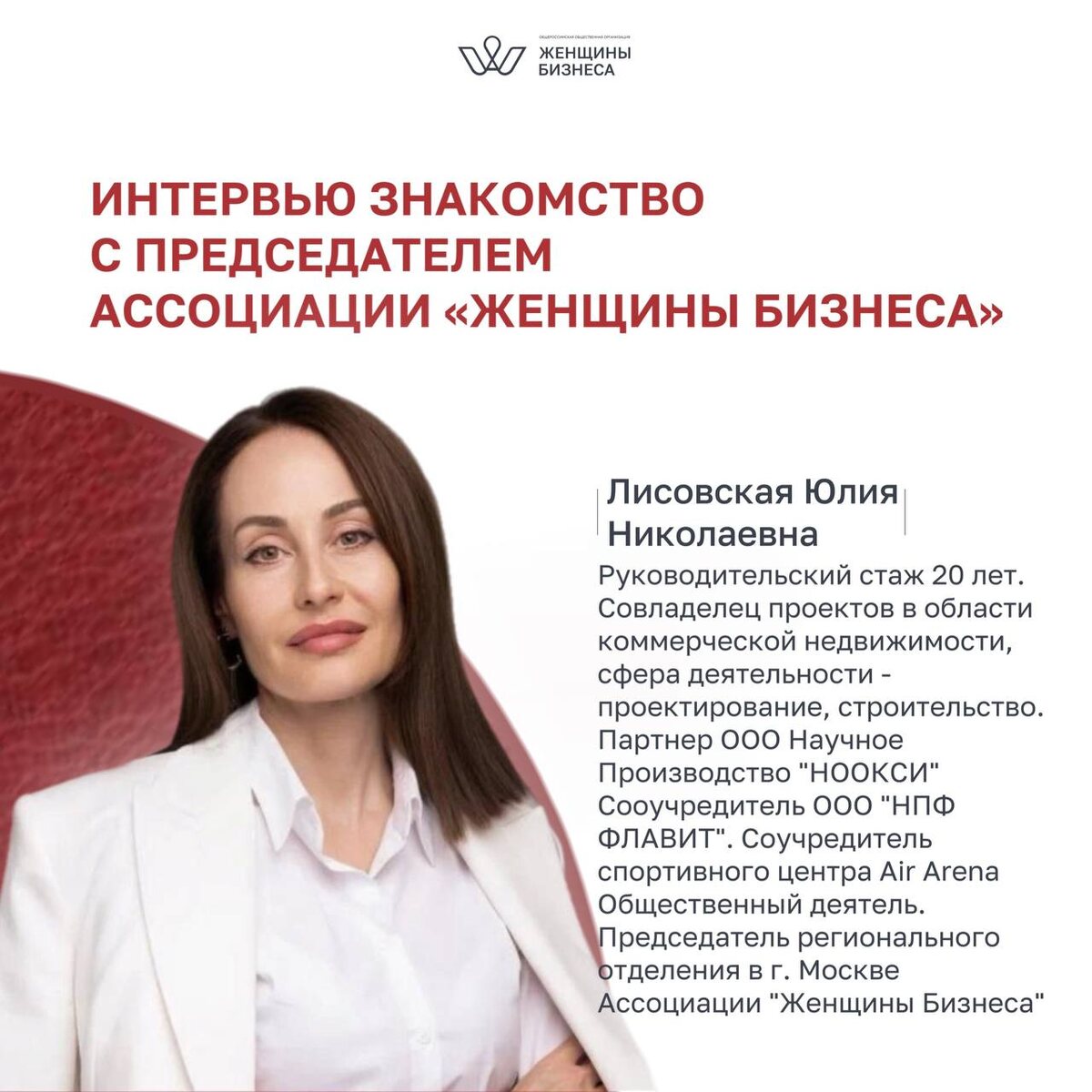 ❤️ Сегодня познакомим Вас с председателем Московского регионального отделения Ассоциации «Женщины Бизнеса» Лисовской Юлией Николаевной - предпринимателем, который прошёл путь от участницы до лидера и сегодня развивает сообщество на уровне региона. Ассоциация объединяет женщин, которые: ✔️ развивают бизнес, ✔️ ищут сильное окружение, ✔️ хотят расти через связи, опыт и поддержку. 🟡Именно такое окружение помогает быстрее принимать решения, находить новые возможности и не идти в бизнесе в одиночку. Если вы чувствуете, что вам откликается такой формат — самое время стать частью Ассоциации «Женщины Бизнеса», переходите на сайт, чтобы познакомиться с Ассоциацией, найти свой регион и вступить в сообщество ⤵️ 👉 https://ruslady.org/ 👉ЖБ МОСКВА #РуководителиРегионовЖБ
