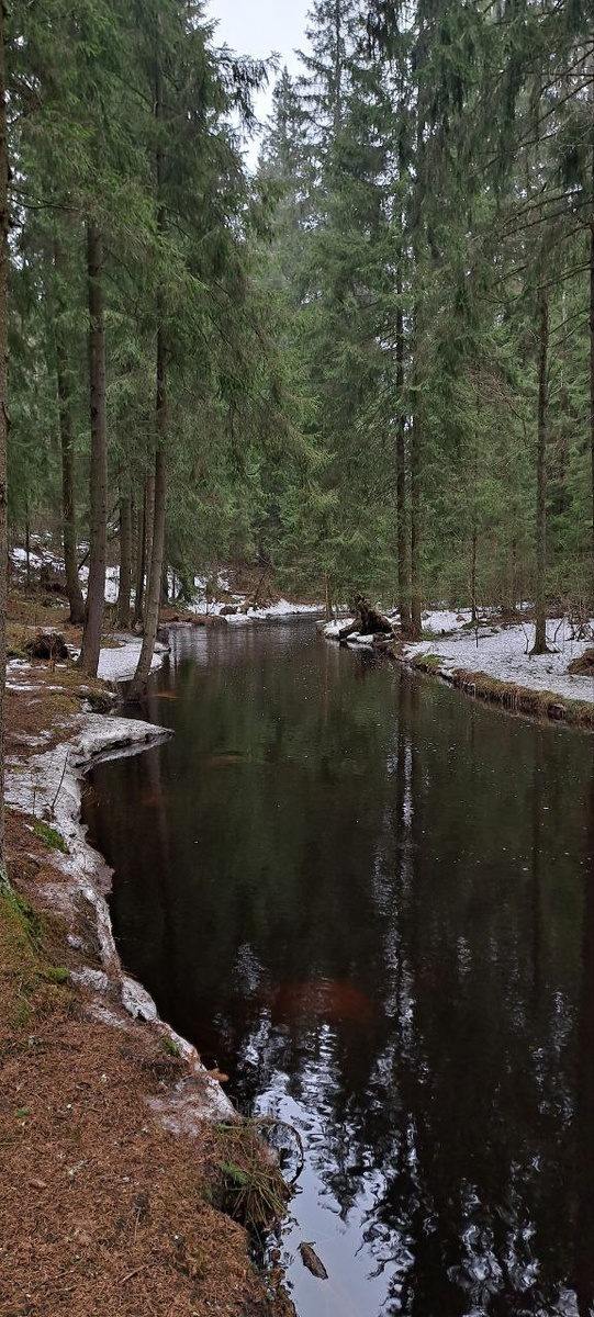 РЕЧКА ЧЁРНАЯ. ЛЕС. Мы вам показываем японский сад с сухим ручьём в Краснодаре. А что у нас? А у нас в лесу природа просыпается. Неспешно. Тихо. С капельками тумана на еловых ветках и журчанием воды. Лёд растаял на реке, а в лесу ещё лежит снег. Холодно. Пасмурно. Но, всё равно - ВЕСНА. #весна #речкачёрная #лес
