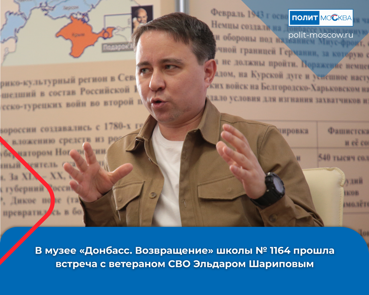 В музее «Донбасс. Возвращение» школы № 1164 прошла встреча с ветераном СВО Эльдаром Шариповым