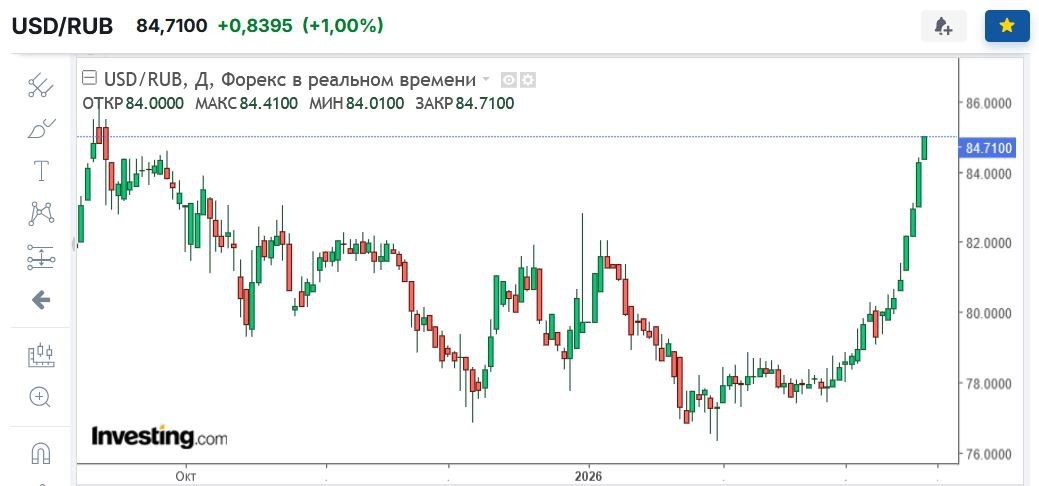 За последние 49 дней (от минимумов конца января) он упал уже на 12,4%. 📷 До этого, в 2025-м году, он вырос на 30,6%. Это безобразие произошло в первые 5 месяцев 2025 года, потом рубль стабилизировался на уровне около 80 за доллар. Январь 2026-го начался примерно так же, но с конца января все опять изменилось, и рубль стал заметно падать. Доллар стал дороже примерно на 10 рублей за 49 дней. Не слишком сильно, вполне контролируемо и плавно. Вот только цели контроля изменились. В начале 2025 года ЦБ активно боролся с инфляцией и для этого использовал все средства, в т.ч. укреплял рубль. Эту цель ЦБ посчитал, видимо, выполненной, и во избежание дальнейших проблем с Минфином и экспортерами во втором полугодии рост рубля прекратился. Кстати, оказалось и усиление санкций на российский экспорт, сокративший поставки. Бюджет-2025-го кое-как свели. Но в 2026 бюджетная ситуация резко ухудшилась, начало года выдалось катастрофическим. Для поддержания бюджета ЦБ прекратил продажи валюты, которые ос
