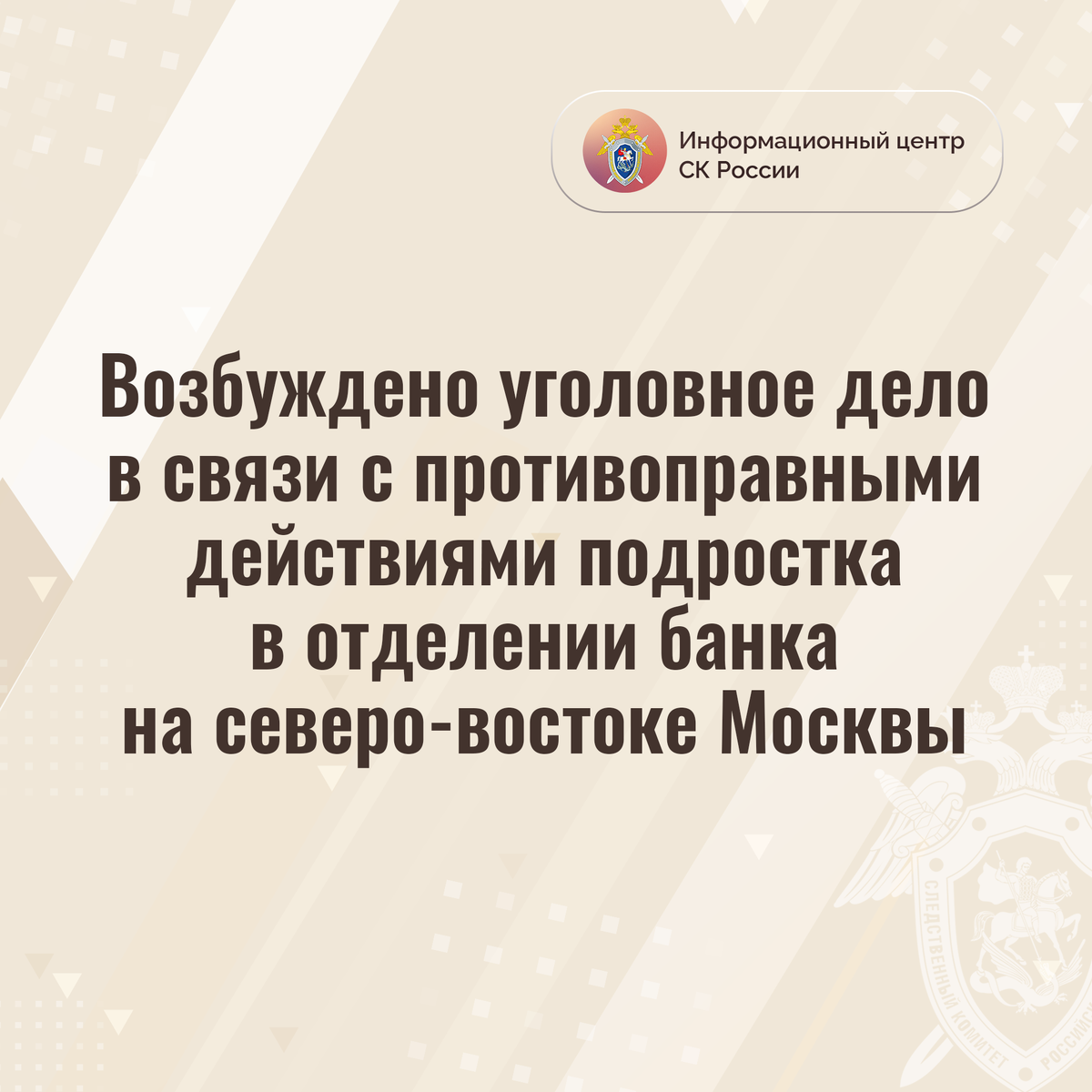 Возбуждено уголовное дело в связи с противоправными действиями подростка в отделении банка на северо-востоке Москвы