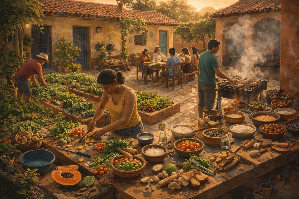 Бразильский поворот начинается с вещи, которую многие рекомендации по питанию годами обходили стороной. Питание здесь описывается не как сумма нутриентов, а как еда в более полном смысле слова: продукты, блюда, способ приготовления, режим, совместная трапеза, культура, экономика, повседневная среда. Это важный сдвиг. Он меняет не отдельный совет, а сам предмет разговора.