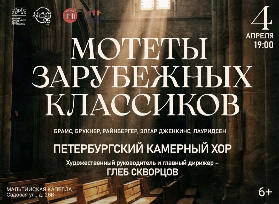 + «Огромная каменная симфония» — так Виктор Гюго называл собор Нотр-Дам де Пари. Именно с ним связано появление мотета — жанра, в основе которого лежит mot, то есть «слово». Пройдя путь от строгих церковных сводов до изысканных светских салонов, мотет стал символом духовной глубины и утонченности. Петербургский Камерный Хор под руководством Глеба Скворцова представит уникальную коллекцию шедевров: от возвышенных сочинений Брамса и Брукнера до современных созвучий Карла Дженкинса. Эта музыка — словно свет сквозь старинные витражи грандиозного собора. Она существует вне времени, даря слушателям редкое чувство соприкосновения с Прекрасным. 04.04 | 19:00 | Мальтийская капелла