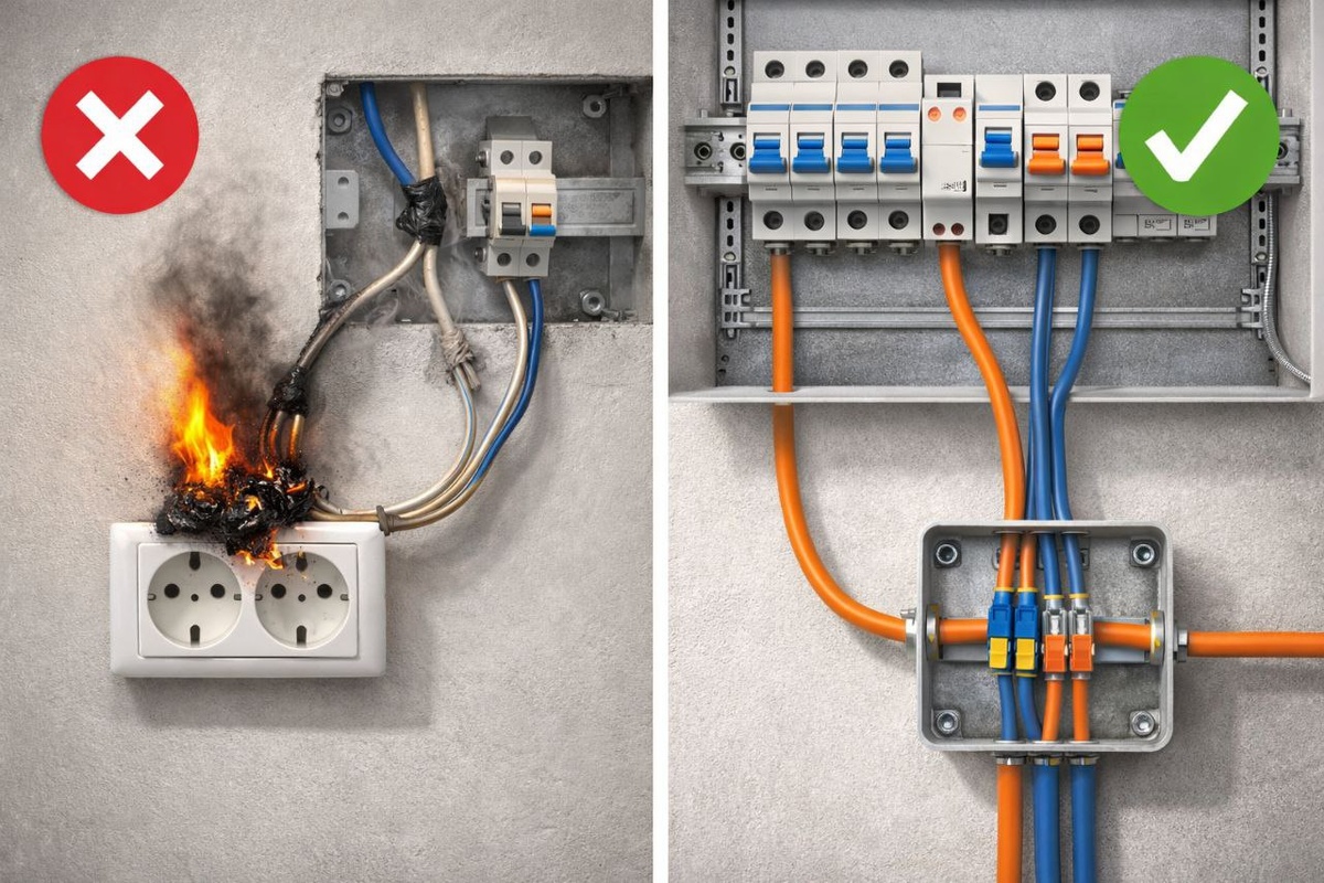 Самая частая ошибка при ремонте: сэкономить на электрике. На первый взгляд — ничего страшного. Но последствия могут быть очень серьёзные. Где обычно “экономят” ❌ дешёвый кабель ❌ алюминиевая проводка ❌ минимум автоматов ❌ отсутствие УЗО ❌ скрутки вместо нормальных соединений Что происходит потом • нагрев проводки • выбивает автоматы • плавятся розетки • короткие замыкания И самое опасное — 👉 риск пожара Почему это критично Электрика делается на 10–20 лет вперёд Переделка потом: дороже сложнее иногда требует вскрытия стен Как делать правильно ✔️ медный кабель ✔️ нормальные автоматы ✔️ УЗО / дифавтоматы ✔️ правильное сечение ✔️ качественные соединения Итог На электрике нельзя экономить. Это не про комфорт — это про безопасность. ⚡ Вопросы и сотрудничество: Telegram: @help_electrik WhatsApp: +7 967 110-14-11 🌐 https://electrik-clge.vercel.app/�