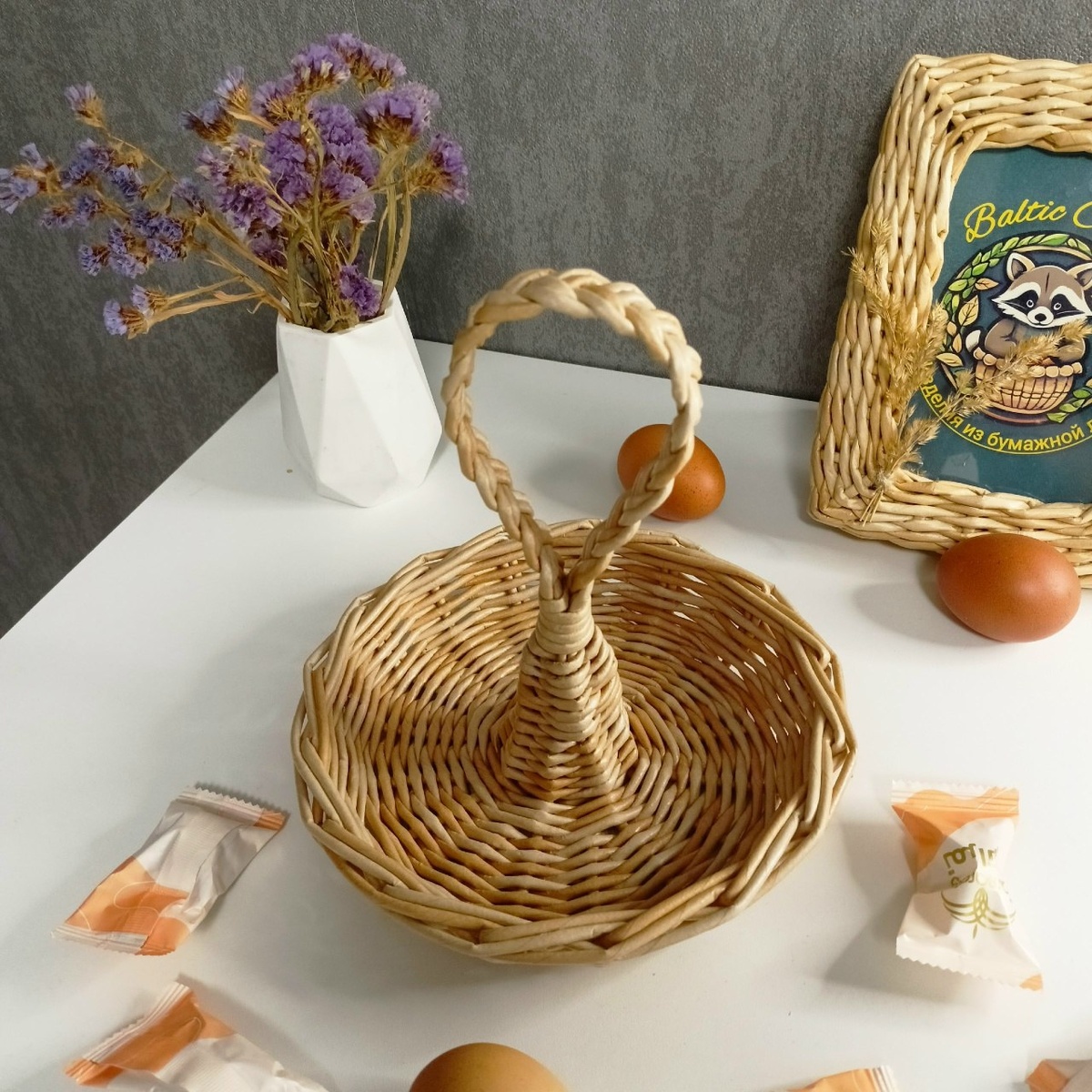 ✨ Ещё одна новинка — плетёная корзинка-переноска. 🧺 Она получилась невероятно нежной и «воздушной», но при этом очень функциональной! Такая переноска — идеальный вариант для: 🍎 Красивой подачи фруктов или сладостей; 🥚 Очаровательный поднос для яиц к пасхальному столу; 🔑 Стильного органайзера для мелочей в прихожей. Натуральный цвет бумажной лозы и изящная плетеная ручка делают её универсальным дополнением к любому интерьеру. 😍 ‼️Но это еще не всё! Для любителей создавать такую красоту отличная новость... 🤫 📽 Я уже готовлю подробный мастер-класс по созданию этой корзинки-переноски! Совсем скоро поделюсь всеми секретами плетения этой формы, чтобы и вы смогли украсить свой дом такой замечательной плетёнкой. Хотите такую корзинку, пишите Диана. 👇 А вы бы что положили в такую корзинку? Ставьте «+» в комментариях, если ждете мастер-класс!