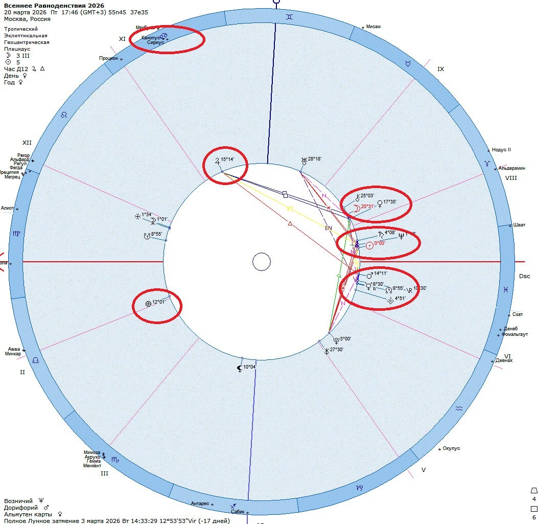 Карта ингрессии Солнца в Овен - важнейший гороскоп года, на основании которого делается прогноз на предстоящий астрономический год. В этом году Весеннее Равноденствие происходит на фоне соединения Солнца с Нептуном и Сатурном и закладывает программу 36-летнего цикла💫. Знак Овна пробуждает дух первопроходца, что подразумевает совершенно новые действия, которые вы ранее не совершали. Рискуйте, если не хотите пропустить свою удачу, но рискуйте с умом. Асцендент карты ингрессии Солнца в Овен (строится на Москву и работает для всей страны) находится в Деве. Знак разумности, кропотливости, планомерности. Управитель карты Меркурий находится в соединении с Северным Лунным Узлом, подчеркивая важность и кармичность года. Северный Узел указывает верное направление развития, помогает не сбиться с курса. Он не исключает задач и испытаний, но шансы выйти из них с честью достаточно высоки. Существенная деталь - Меркурий в точке стационарности. Стационарность максимально проявляет свойства планеты. В